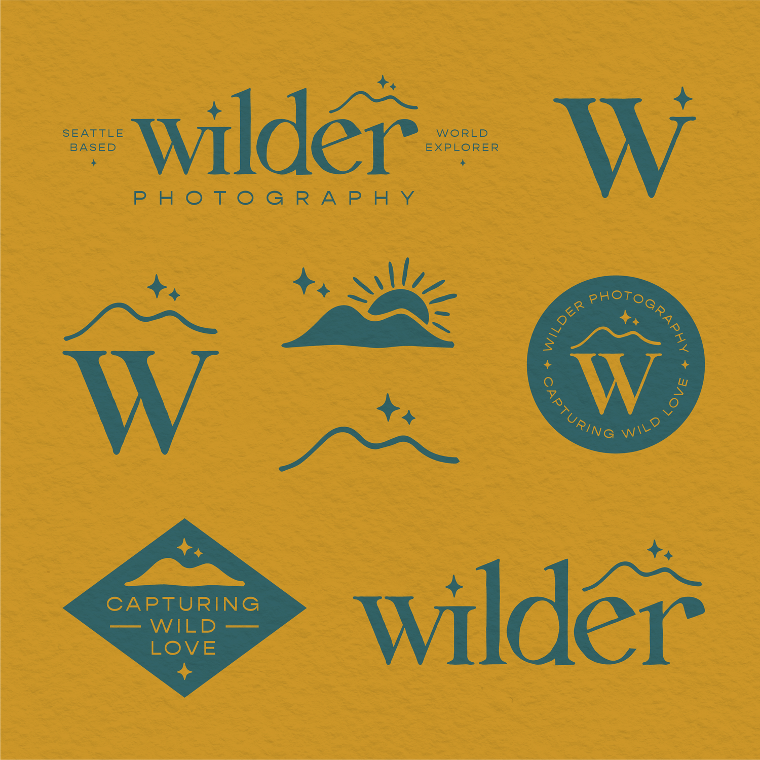 The iconography included in the primary logo and secondary mark are meant to convey the adventurous part of Wilder Photography. The magic of the photography is made outdoors and organically and the mountain graphic represents this wild spirit.
