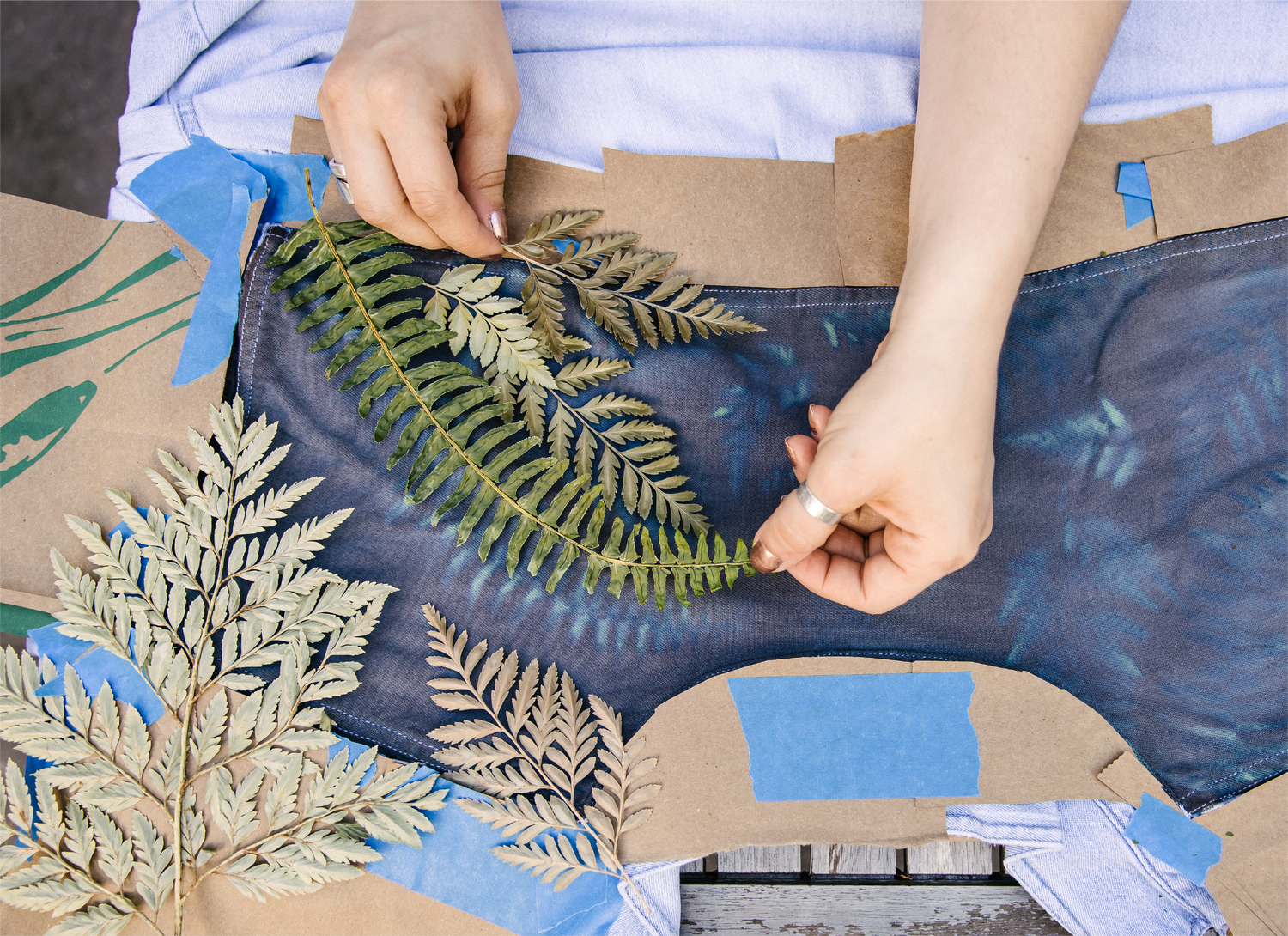 Inspired and created by being in the outdoors, the solar silhouette prints capture botanicals printed by the sun into wearable forms.